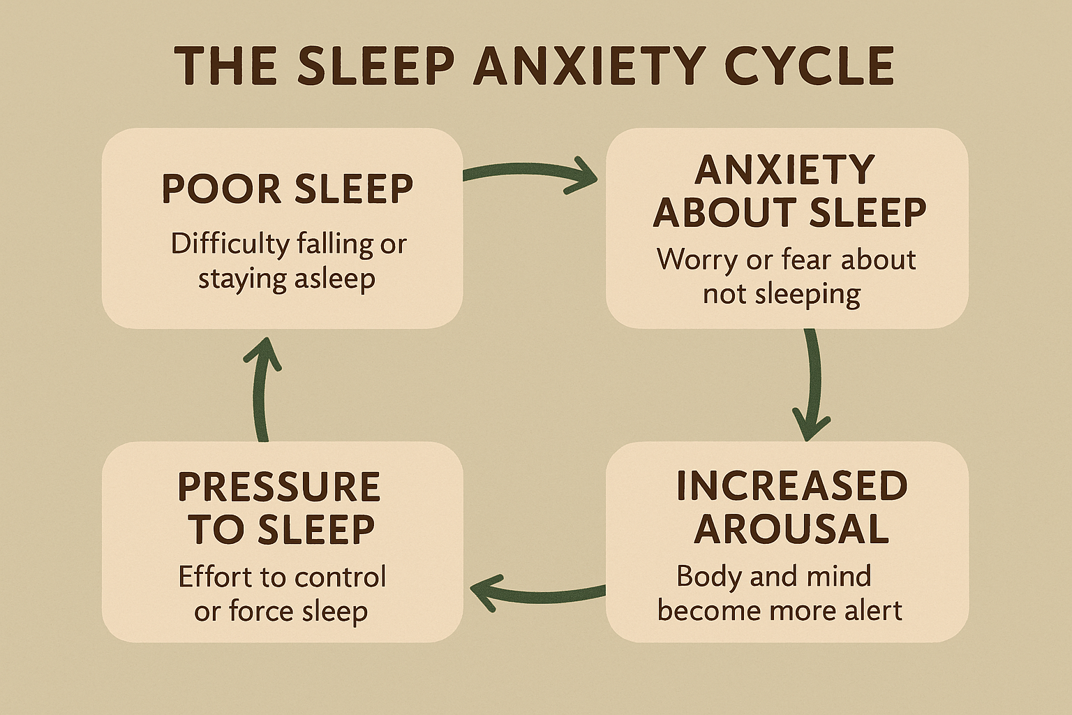 Just as our understanding of pain has evolved, so has our understanding of sleep. We now know that the pressure we place on ourselves to get "perfect" sleep, worrying about how many hours we get or fearing the effects of a poor night’s rest, can actually activate the nervous system and increase anxiety around sleep. This stress response can make falling asleep even harder, creating a cycle where fear of not sleeping becomes the very thing that keeps us awake. Poor sleep and chronic pain often reinforce each other as well: lack of sleep heightens pain sensitivity, and increased pain makes it harder to rest, leading to even more worry. Over time, this pattern can create what’s known as the sleep anxiety cycle, where the brain becomes more alert at night and the bed starts to feel like a place of stress rather than comfort. The goal of this module is to provide tools and insights to help you break that cycle and reconnect with sleep in a more supportive way.